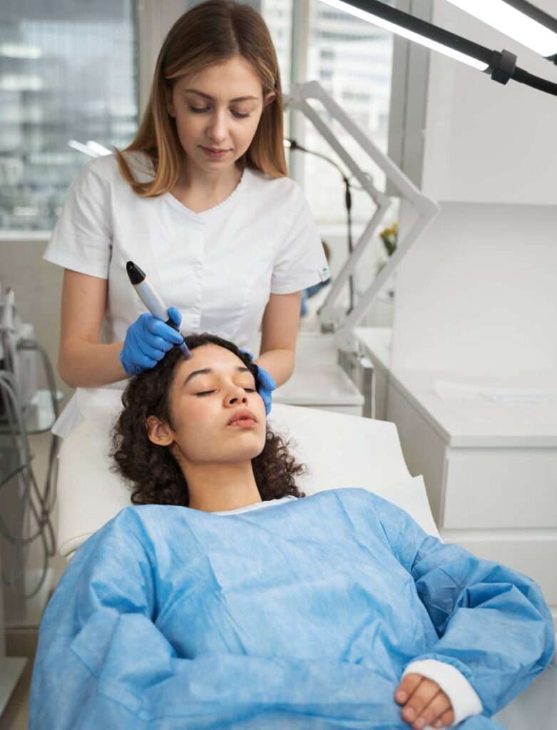 Hydrafacial uses a medical device for deep extraction of impurities while infusing serums simultaneously.
